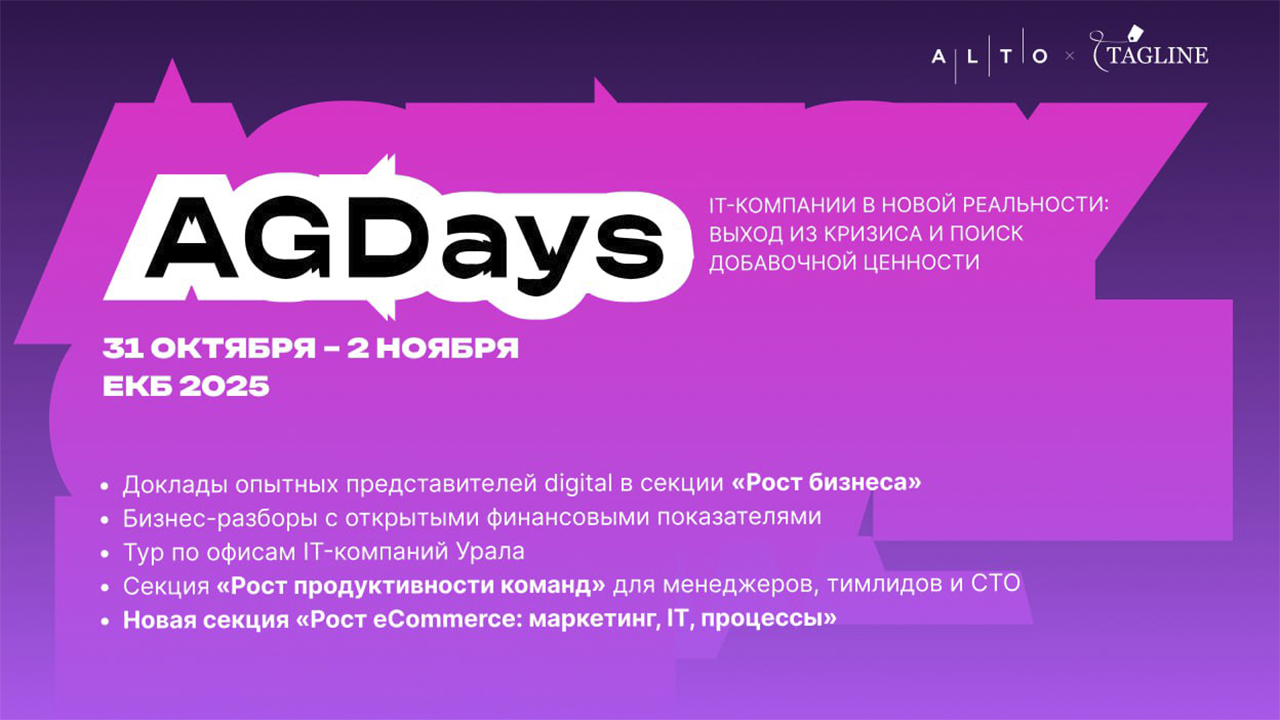 С 31 октября по 2 ноября в Екатеринбурге пройдёт AGDays (https://agday.ru/) — конференция, которая уже пятый год собирает руководителей IT-компаний и digital-агентств, чтобы обсудить вызовы рынка, разобрать кейсы компаний и неформально провести время с коллегами по индустрии. В программе три дня пользы и эмоций ⚡️ • 31 октября (пятница): Digital Tour by Doubletapp по офисам уральских компаний и грандиозная Halloween-вечеринка Как это было в прошлом году (https://vk.com/video-99988726_456239389) • 1 ноября (суббота): деловая часть в Домне — три секции с докладами: «Рост бизнеса», «Рост продуктивности команд» и «Рост eCommerce», а также бизнес-разборы компаний с открытыми цифрами. Вечером — Afterparty прямо на площадке, а потом кальян, танцпол, караоке — неформальное продолжение на любой вкус! • 2 ноября и длинные выходные в Екатеринбурге: экскурсия по городу, digital-баня для самых решительных, а также маршруты по ресторанам и барам от уральского IT-комьюнити. Знакомьтесь с форматами подробнее на сайте 🔗 (https://agday.ru/) Присоединяйтесь, если вы руководитель IT-компании или агентства, проджект, продакт, тимлид, технический или eCom-директор, аккаунт или пиарщик. Зачем? За новыми контактами, впечатлениями и честными инсайтами — как другие проходят кризис, какие управленческие подходы работают и за счёт чего компании продолжают расти в непростое время. Партнеры конференции: .redev (redev.ru), Doubletapp (doubletapp.ai), Далее (dalee-group.ru), ipos.digital, Haydex (haydex.ru), Next Level (next-level.agency)