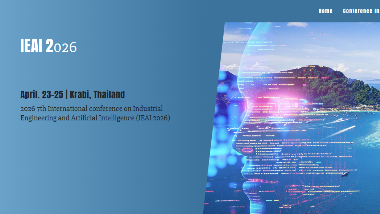 The 7th International Conference on Industrial Engineering and Artificial Intelligence (IEAI 2026) will be held in Krabi, Thailand, 23-25 April , 2026. It is a premier forum dedicated to the convergence of industrial engineering and artificial intelligence (AI). As industries worldwide rapidly adopt AI to enhance efficiency, productivity, and innovation, this conference aims to explore the latest advancements, research, and applications at this intersection.