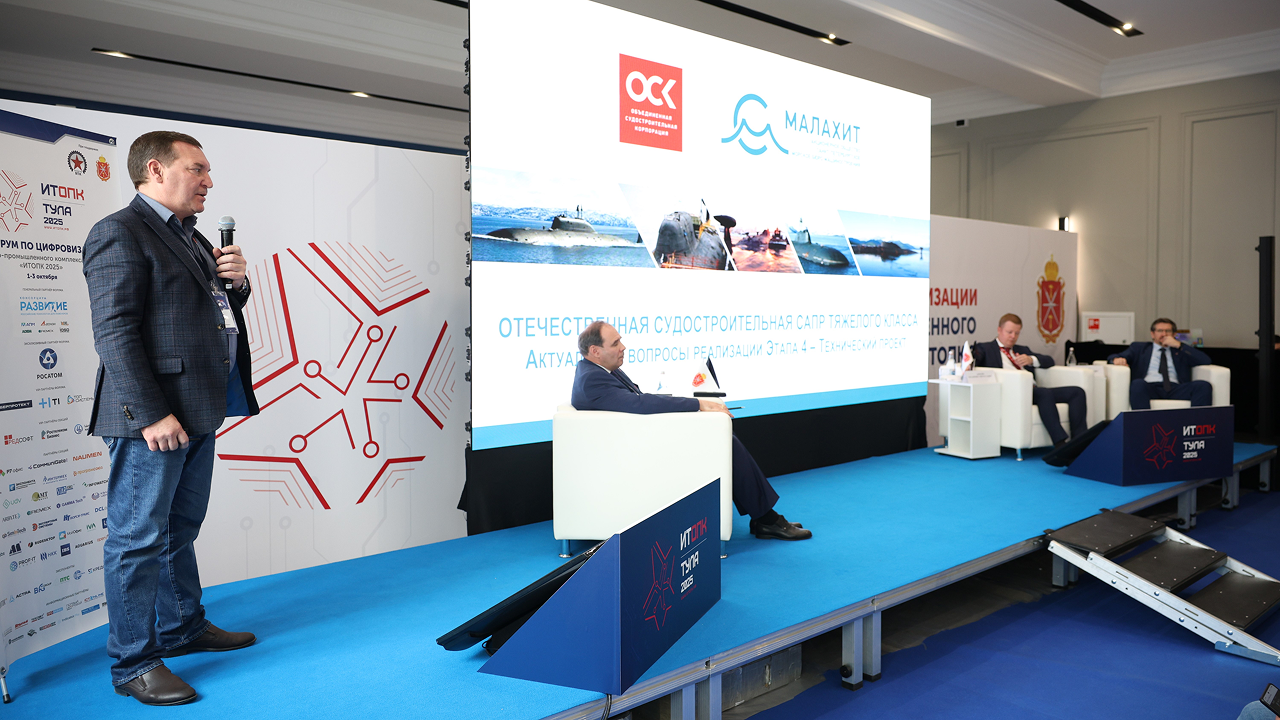Начальник отдела информационных технологий АО «СПМБМ «Малахит» Андрей Новиков выступил с докладом «Актуальные вопросы реализации Этапа 4 – Технический проект» относительно результатов этапа 4 проекта «Доработка и внедрение отечественной судостроительной САПР тяжелого класса как среды проектирования и конструкторско-технологической подготовки производства». Был сделан подробный анализ предлагаемого решения и вывод о соответствии Решения требованиям и ожиданиям отрасли.