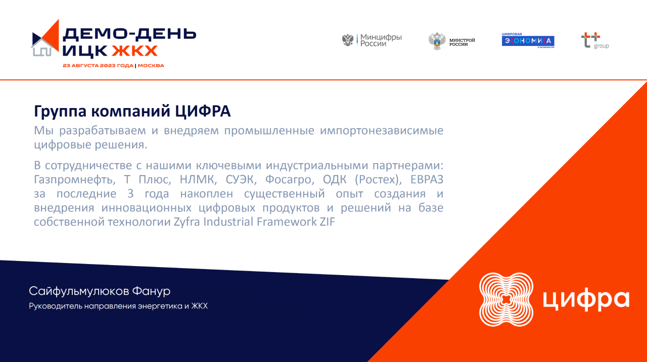 Мероприятие прошло с участием Министерства строительства и жилищно-коммунального хозяйства Российской Федерации, лидера ИЦК ЖКХ ПАО «Т Плюс» и отраслевых компаний на платформе АНО «Цифровая экономика».
